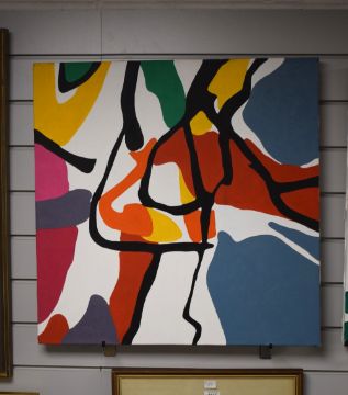 Jazamin Sincalir (Contemporary) A pair of oils on canvas, vibrant abstract line compositions, signed and dated (2003) verso, 61cm x 61cm overall.
