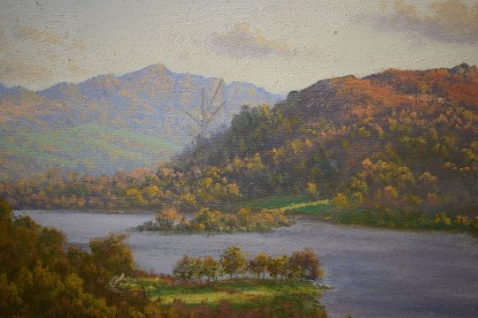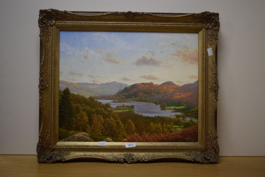 *Local Interest* Peter Mckay (British Contemporary) Oil on canvas 'Rydal Water from White Moss', a golden hour Lake District landscape, signed lower right, entitled verso, within moulded gilt frame, 49cm x 38.5cm & 62.5cm x 51.5cm overall.