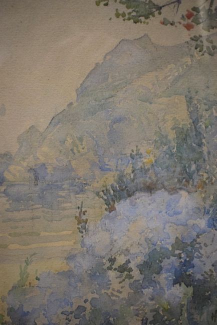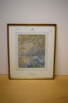 James Hamilton Hay (British 1874-1916) Watercolour 'Rhododendrons', a lakeside floral study, signed and dated (1909) lower right, entitled and attributed to lower centre mount, within washline card mount and moulded gilt frame, under glass 21.5cm x 27cm & 38.5cm x 45cm overall.