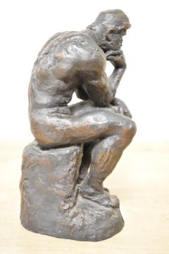 A 20th century resin reproduction of Auguste Rodin's 'The Thinker', no signatures or markings, measures 24cm tall.