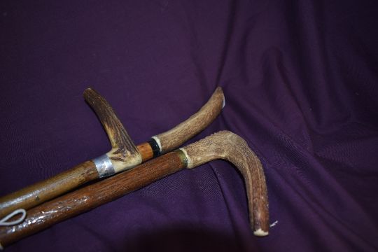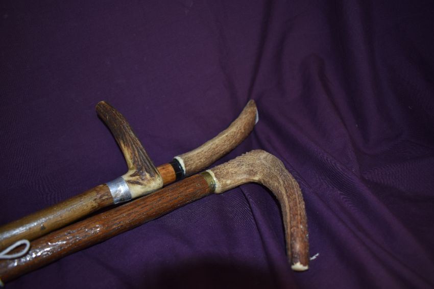 Three antler handled walking sticks measuring 90cm, 100cm and 106cm