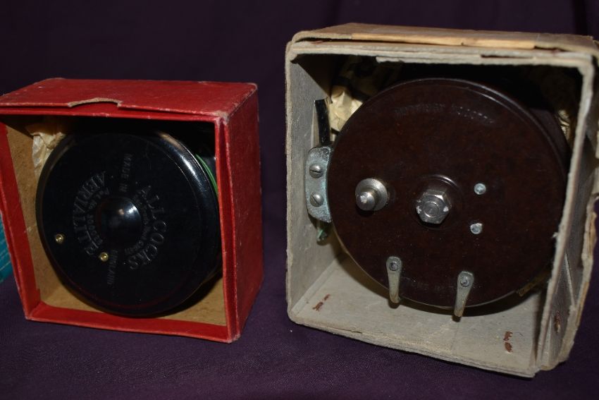 2 x Allcocks Aerialite fly reels in original boxes and a J W Young and son Pridex 3inch fly reel (all have very little signs of wear)