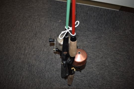 Two ABUMATIC reels and rods one is 5ft the other 5ft 6in both wither trigger grip handles and abumatic reels fitted a 220 and a 150 the tip of one rod has an eyelett missing