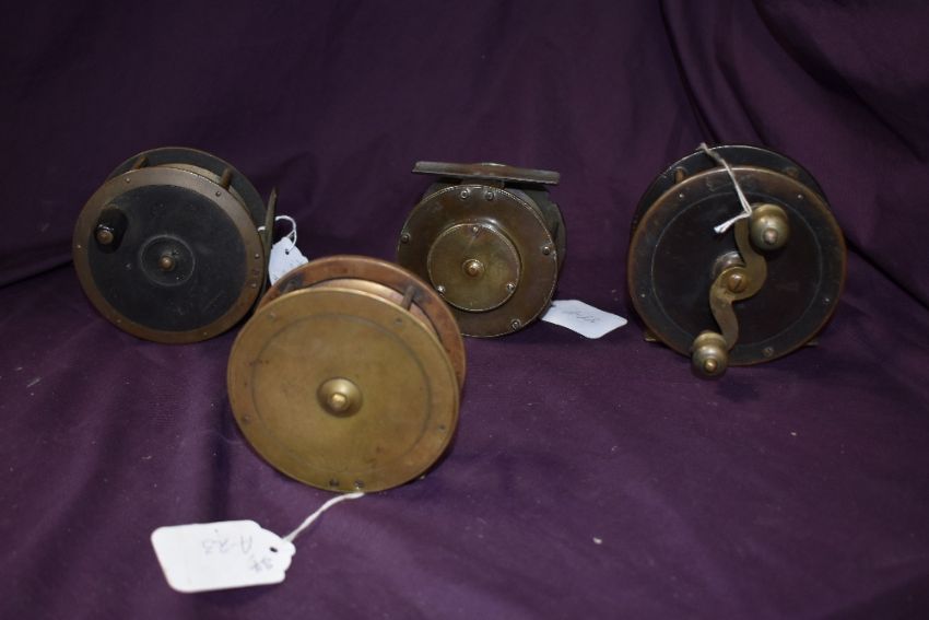Four large Salmon fly reels circa 1900 only one is marked 'R Ramsbottom Manchester'