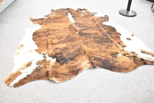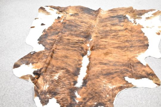 A large cow hide measuring 190cm x 200cm some splits and holes along the spine