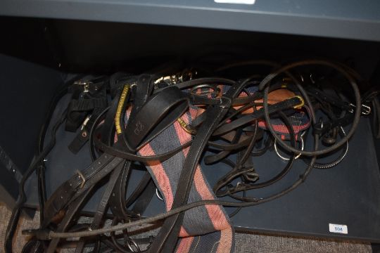 Full size horse tack comprising of a poll training aid, lunge head collar, a cir single,A full bridle with brass brow band, a bridle less nose band and a dimonte headband, a martingdale and draw reigns, curb reigns with martingdale attachment, D-rings , a curb chin guard and a lip strap.