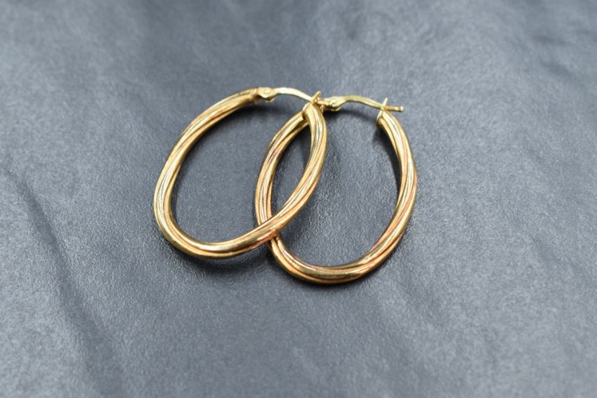 A pair of 9ct gold hoop earrings, of oval form having a twist design, marked 9kt, 1.9g