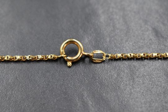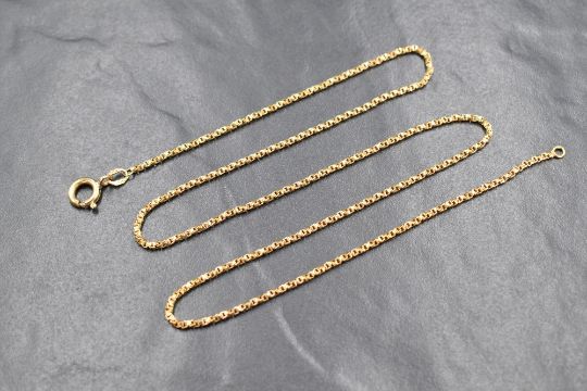 An 18ct gold box link 19' chain having a 9ct gold clasp, approx 9g