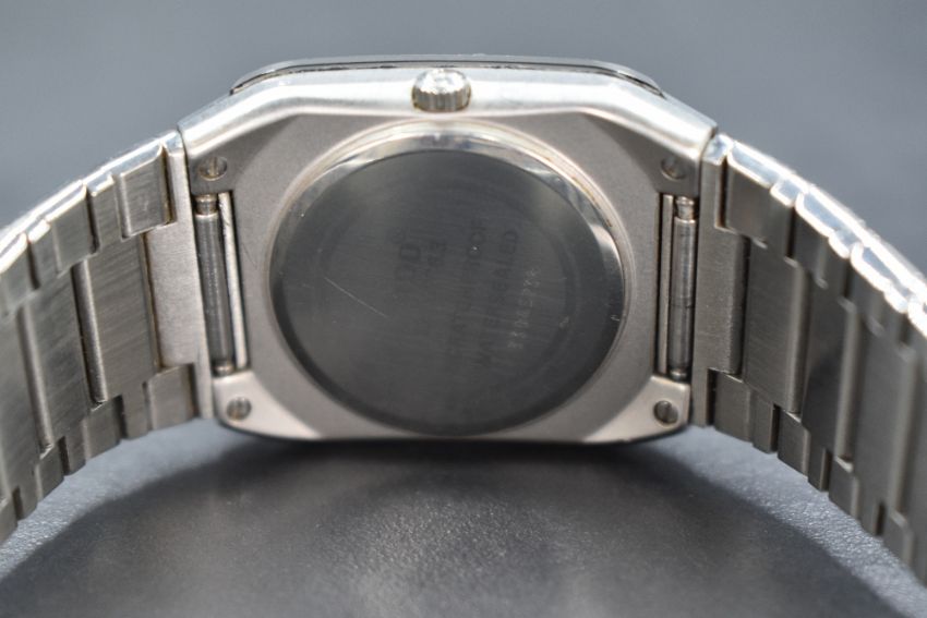 A Rado DiaStar wristwatch, the grey rectangular dial having baton five minute markers and date aperture at six, the case numbered 129.02663 and 33045738, on a two-tone stainless steel bracelet strap