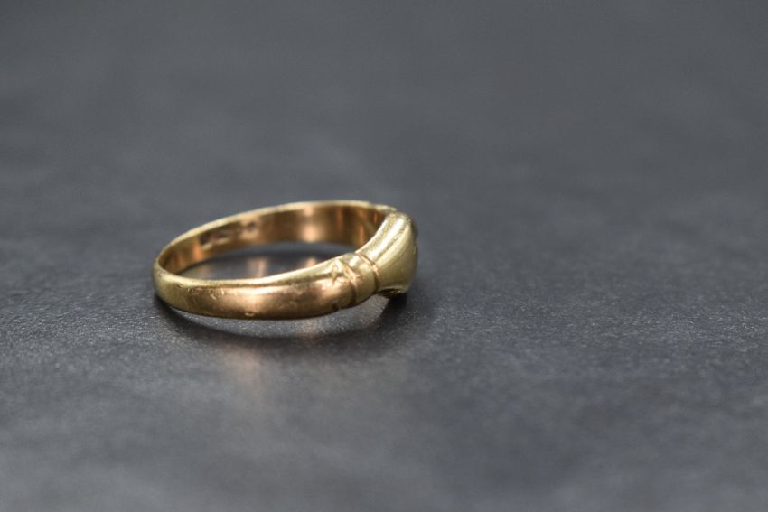 A 9ct gold band, having two clasped hands to the centre , marked 375, ring size M-N, 3.1g