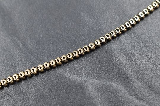 A yellow metal fancy box link chain, having a dog clip closure, 44.5cm, 9.1g