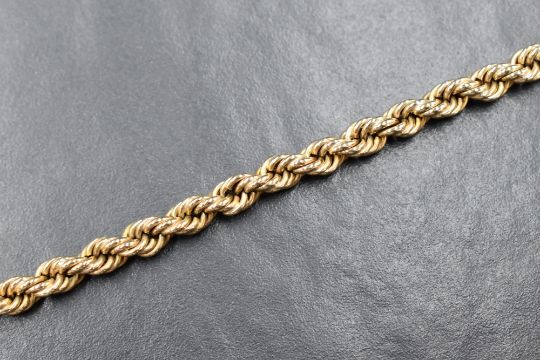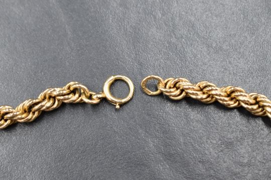 A 9ct gold rope link chain, marked 375, 43cm, 21.1g