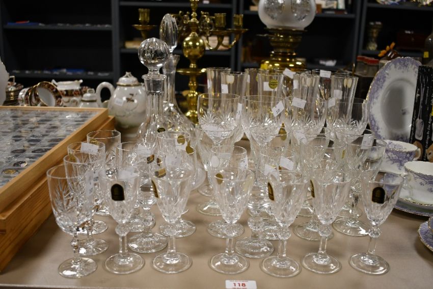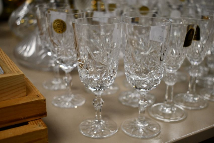 A selection of 20th-century crystal cut glasses and decanters, to feature Italian Cathedral Crystal, Czechoslovakia Bohemia, French Cristal d'arques and more, most with stickers but not all, (37), condition is consistent with age and use, all sold as seen.