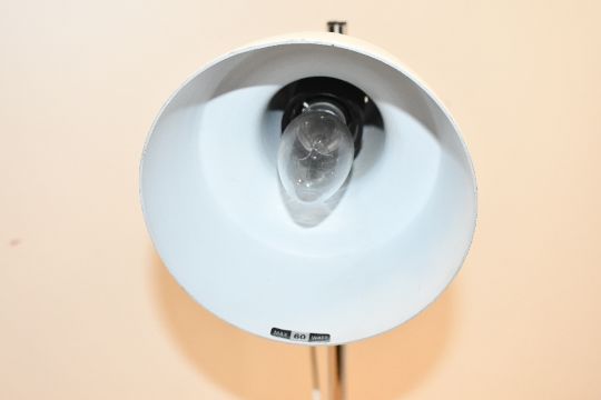 A vintage British Home Stores metal desk lamp, featuring an adjustable spotlight head and a chromed stem, sticker to base, approximately 40cm, condition is consistent with age and use, sold as seen.