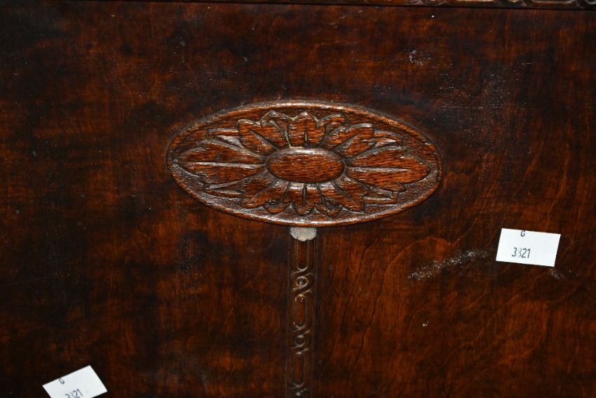 An early to mid 20th-century hard wood fireplace screen, featuring a carved oval floral centrepiece with border detailing, unmarked 66.5cm x 54cm, condition is consistent with age and use, having visible areas of surface wear, sold as seen.