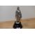 A 20th-century German metal knight-in-armour table lighter, the hinged visor opening to activate the lighter and simultaneously engage a music-box mechanism playing a melodic tune, unmarked, 21cm tall, condition is consistent with age and use, visible areas of surface wear and lighter mechanism currently not in working condition.