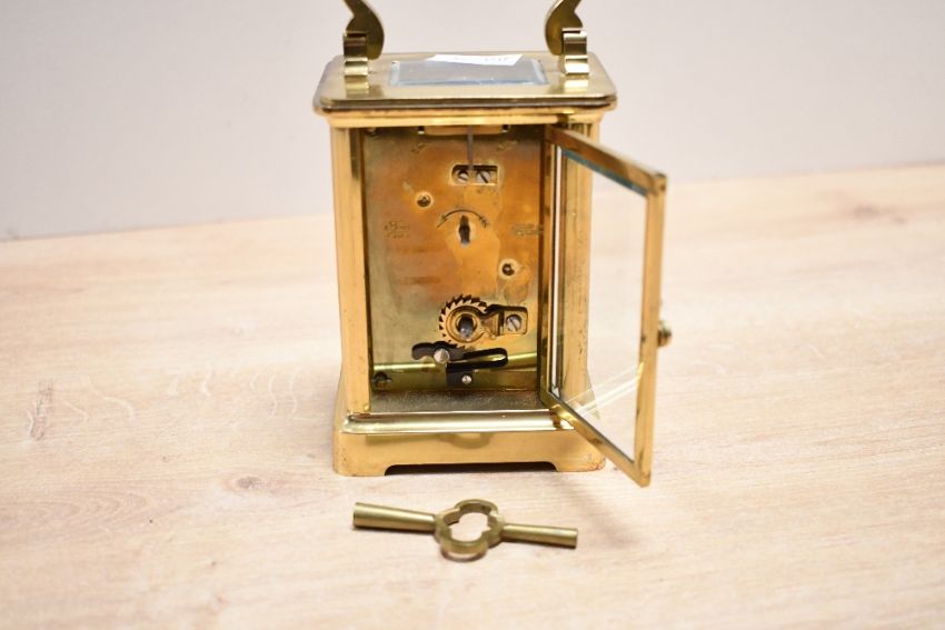 A mid to late 20th-century Fema of London 11 Jewels brass 5 glass carriage clock, marked to back plate, 15cm, condition is consistent with age and use, having some visible areas of surface wear, with key, sold as seen.