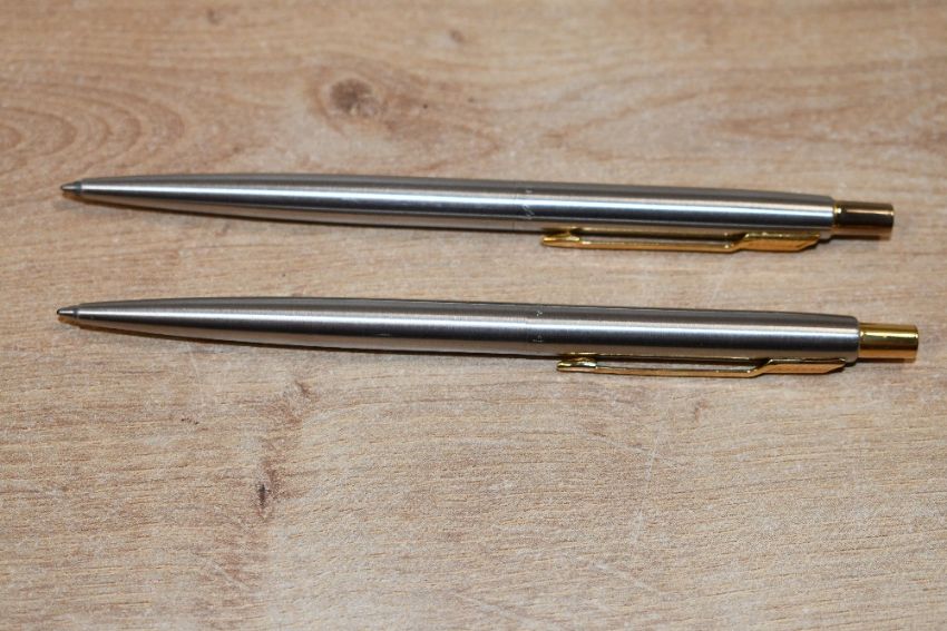 Two Parker 75 ballpoint pens in Flighter having gold trim