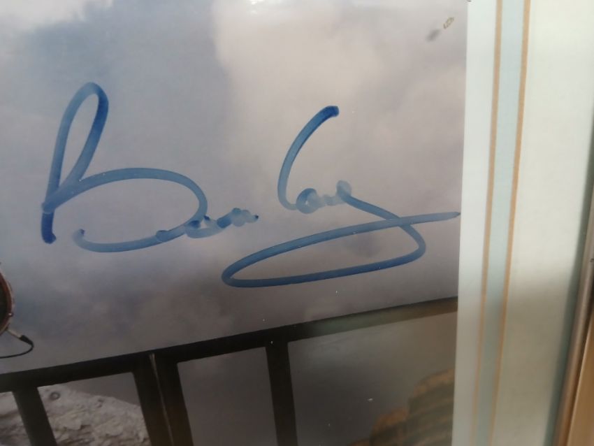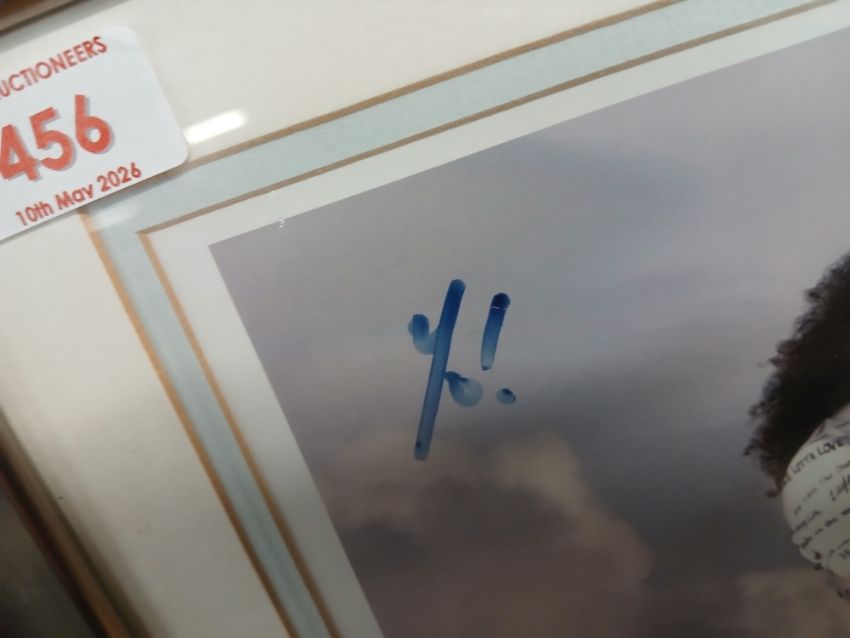 A Brian May print - framed and signed but we not have an authenticity - 35cm x 30cm - Queen interest