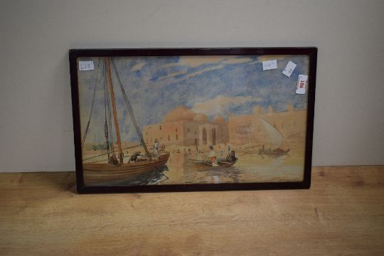 L Pagganni (20th Century) A pair of watercolours, Arabian sailing scenes, signed lower left and right, within flat wooden frames, under glass 42cm x 24.5cm overall.