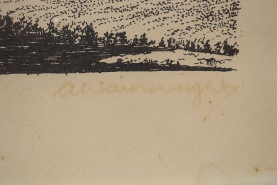 *Local Interest* After Alfred Wainwright (British 1907-1991) Print 'West Tanfield', a study of the North Yorkshire village originally published in 'A Second Dales Sketchbook', entitled to lower left margin and signed lower right, within moulded black frame, under glass 20cm x 14cm & 27cm x 22cm overall.