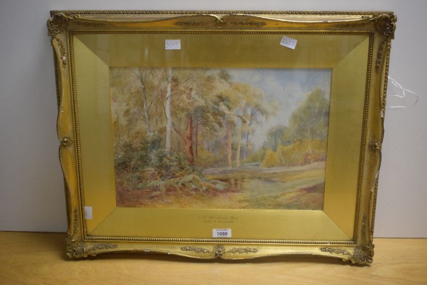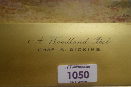 Chas B Dickens (19th Century) Watercolour 'A Woodland Pool', an autumnal woodland study, signed lower right, attributed and entitled to slip, within gilt slip and moulded gilt frame, under glass 38.5cm x 26cm & 59cm x 46cm overall.