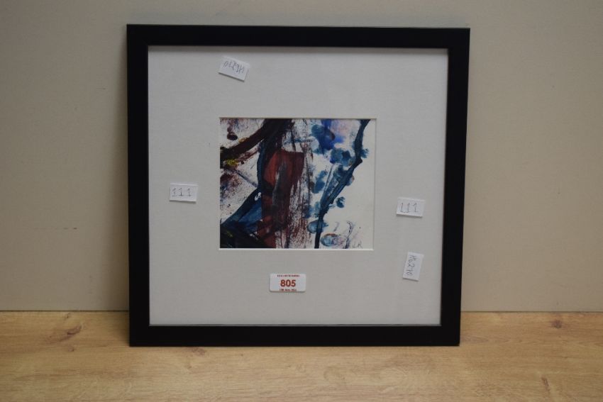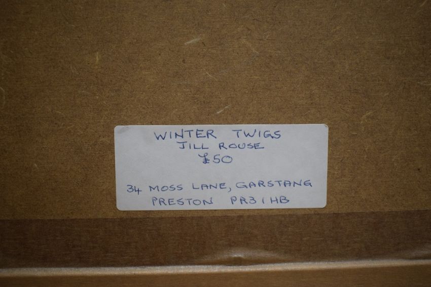 Jill Rouse (British Contemporary) Watercolour and ink 'Winter Twigs', an abstract composition, initialled in pencil lower right, entitled and attributed verso, within card mount and flat black frame, under glass 15cm x 12.5cm & 33cm x 31cm overall.
