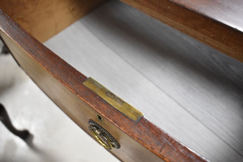 A late 19th or early 20th Century mahogany chest of two short over three long drawers, having bow front and short cabriole legs, width approx. 105cm