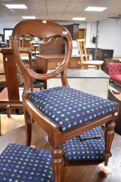 A set of four Victorian balloon back dining chairs having turned legs, plus two extra seat pads
