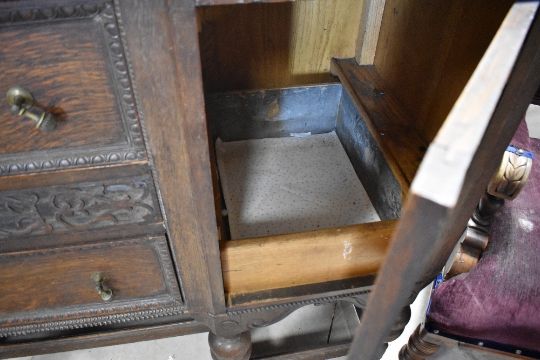 An early 20th Century oak sideboard having three central drawers flanked by cupboards, on bulbous supports, width approx. 152cm