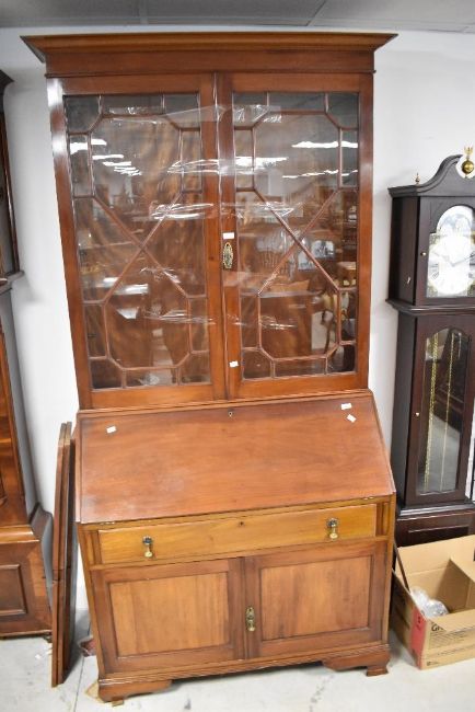 A 19th Century and later mahogany composite bureau bookcase having astral glazed section over drop flap, single drawer and double cupboard, dimensions approx. H225 W106 D55cm