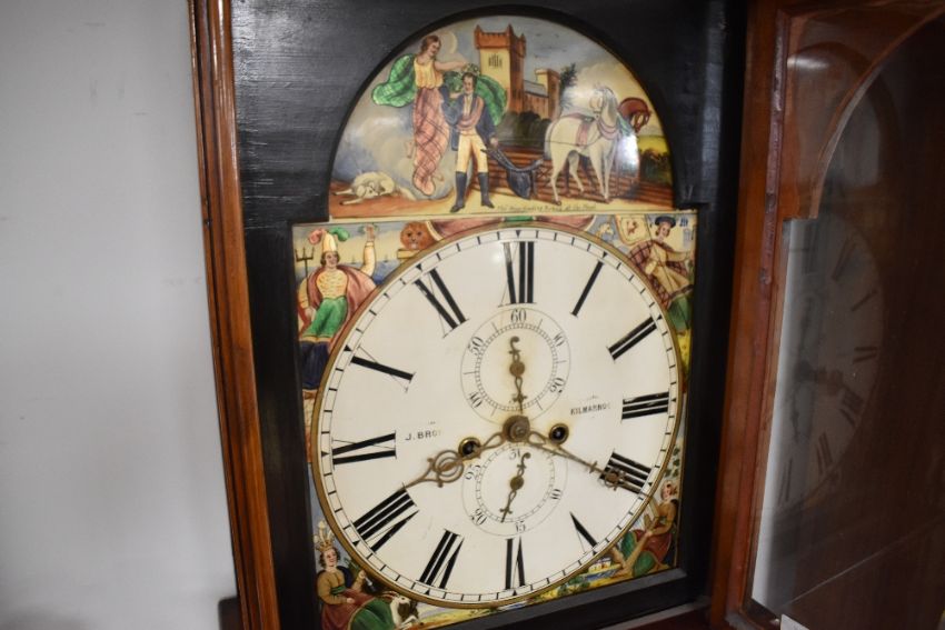 A 19th Century mahogany long case clock having eight day movement with painted dial named J Brow(n) Kilmarnock, height approx. 235cm