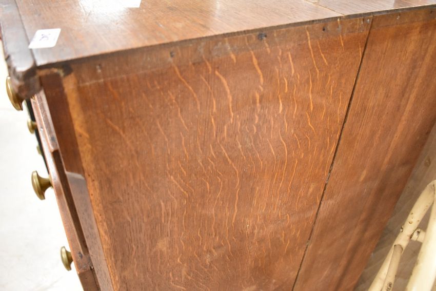 A 19th century oak chest of two over three drawers having brass handles, bone escutcheons and bracket feet, dimensions approx. Width 117cm height 109cm depth 55cm, some moulding missing from top on one side
