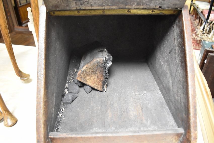 A Victorian mahogany coal purdonium, having brass handle, with matched shovel and no liner