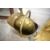 A traditional brass warming pan and coal helmet