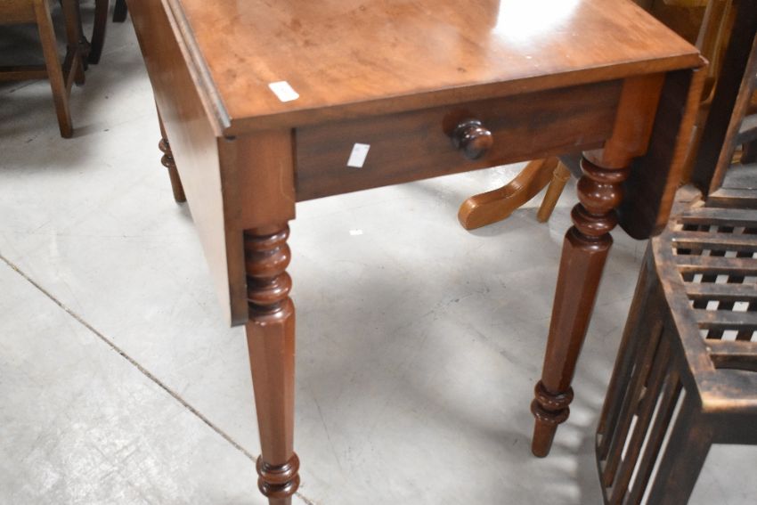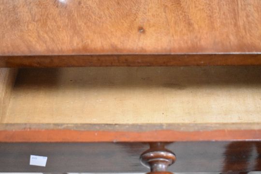 A Victorian mahogany dining table having frieze drawer and drop flaps having frieze drawer and turned legs