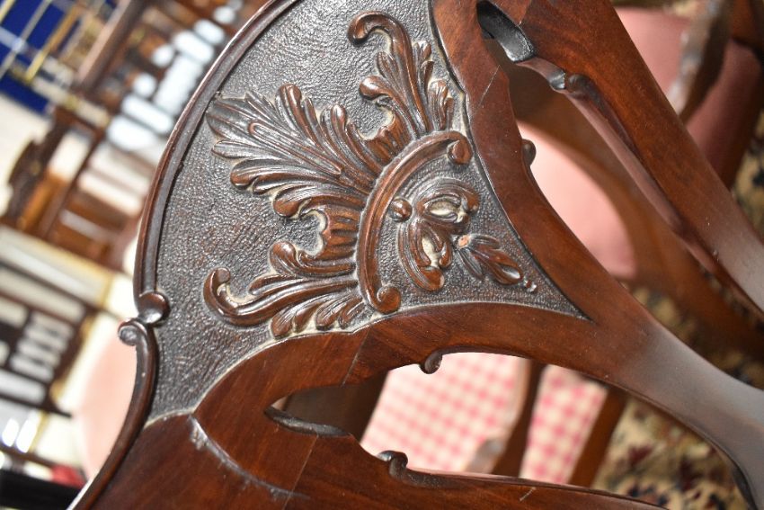 A 19th Century mahogany Chippendale style dining chair having later upholstered drop in seat