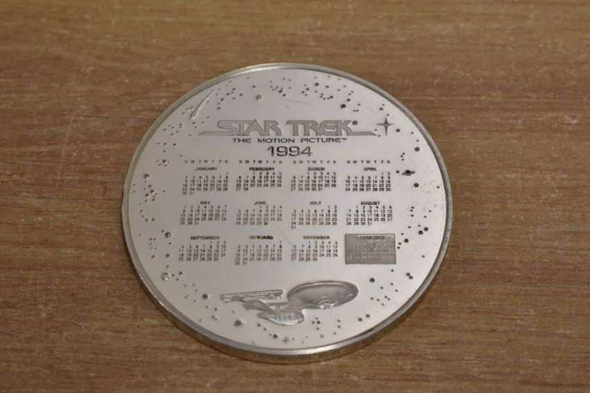 925 Sterling Silver Star Trek Medallion, The Motion Picture 15th Anniversary 1994 Calander,, diameter 7.6cm, weight 215g, hall marks seen to edge