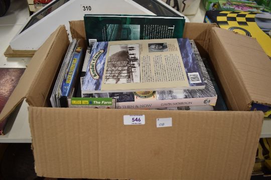 A collection of books and media focused on British transport and industrial history, primarily concerning railways and canals. The lot includes several illustrated volumes: John Satchell, Kendal's Canal: History, Industry and People, Kendal Civic Society, octavo softcover; Gavin Morrison, London Midland Then & Now, Ian Allan Publishing, quarto hardcover in dust jacket; Laurence Waters, GWR Then & Now, Ian Allan Publishing, quarto hardcover in dust jacket; and Ron Heaviside, Lancashire's Last Days of Steam, landscape softcover. The group is supplemented by a media case titled More Diesels in Action and a small Smash Hits promotional booklet for the band The Farm. The volumes comprise a mix of hardcover and softcover bindings featuring extensive monochrome and colour photographic illustrations documenting regional infrastructure.