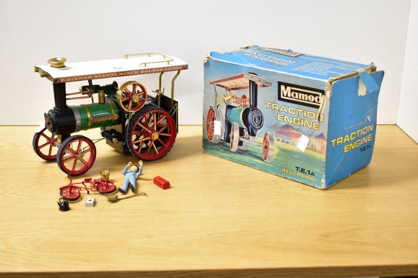 Mamod Live Steam Traction Engine TE1A Reversing, F Dibnah Steepejack Bolton 531303 to canopy, does not appear to have been fired, with figure and accessories, original box but worn