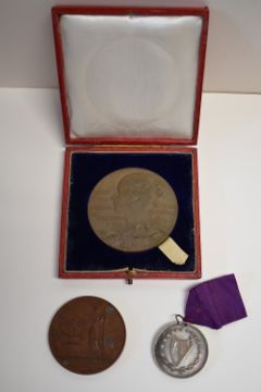Commemorative Medals, Comprising, A Queen Victoria 1897 Bronze Diamond Jubilee Commemorative Medal, Obv Old Veiled Head, Rev Young Head 1837, Boxed, Diameter 56mm, Weight 73.12 Grams. A Society Of Medicine Bronze Medal, Obv Antonius Fothergill MD. LLD, Diameter 45 mm, Weight 44 Grams. A 1873 South Wales Choral Union Medal (Probable Silver), Obv Harp, Diameter 30mm, Weight 12 Grams. (3)