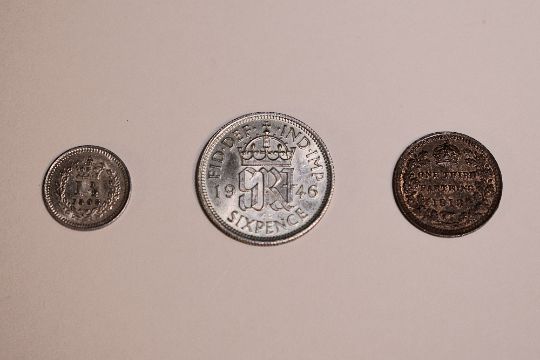 British Nineteenth And Twentieth Century Coinage, Comprising, A Queen Victoria 1843 Silver Three Halfpence, A George V 1913 One Third Farthing, A George VI 1946 Sixpence.