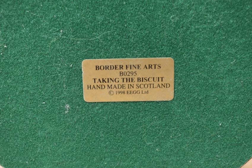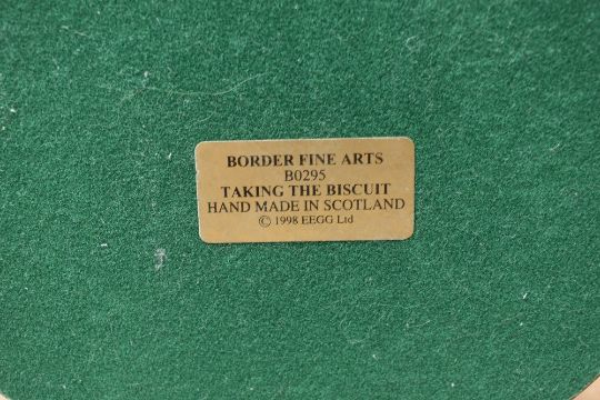 A group of three Border Fine Arts animal groups comprising 'Settle Down' model number A2680 designed by Anne Wall, 'Ladies in Waiting' model number A0163 designed by Anne Wall and 'Taking The Biscuit' model number B0295 designed by Anne Wall, all complete with boxes.
