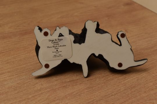 A group of three Border Fine Arts animal group studies comprising 'Labrador & Pup' model number DPG01B and 'Three Black Labrador Pups' model number A1446 x2, all complete with boxes.