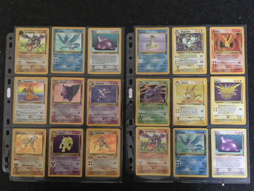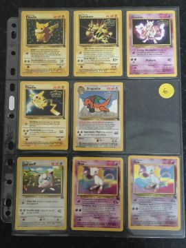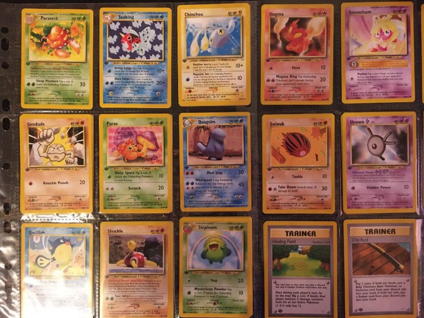 An extensive collection of 1990's and later Pokemon cards including complete sets, Base 102 cards, Jungle 64 cards, Fossil 62 cards, Team Rocket 82 cards, Gym Heroes 132 cards, part sets including Gym Challenge, Neo Genesis, Neo Discovery, Neo Genesis edition 1, Base 2, Neo Revelation, Neo 2 Promo set (2000) set of 9 cards, Ancient Mew in plastic sleeve, Secret card (Team Rocket) Dark Raichu 83/82 etc approx 3000 cards in books with approx 4000 cards loose also included is a set of four Viz comics including limited edition no1 signed by actors, vol 2, 3 & 4, with vendor list