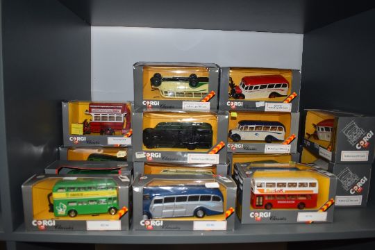 A collection of seventeen Corgi (Great Britain) Classic diecast buses, all boxed