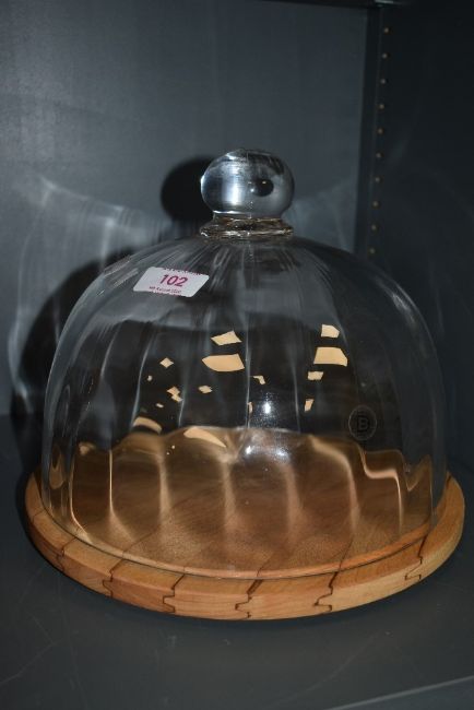 A lidded cheese dome with beech wood base by Dartington