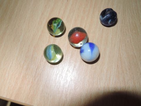 A selection of childrens glass marbles some or age and various designs