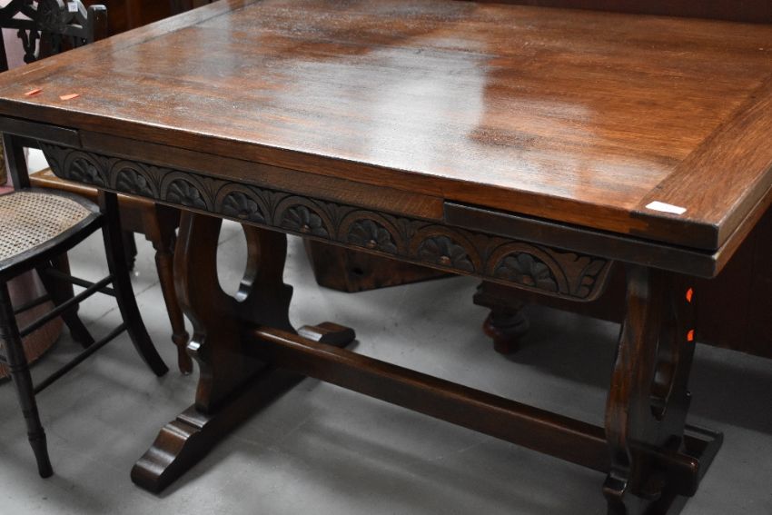 An early to mid 20th Century oak draw leaf dining table, in the refectory style, approx. 121 x 76cm closed