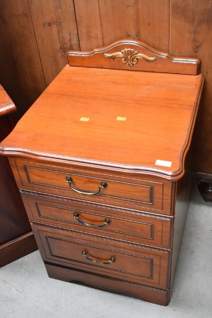 A modern mahogany effect chest of three bedside drawers, width approx. 50cm